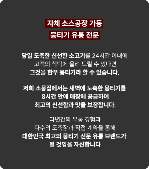 대한민국 최고의 뭉티기 전문 유통 브랜드가 될 것임을 자신합니다